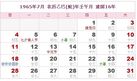 1965年1月1日-1965年2月1日农历甲辰年(龙年)