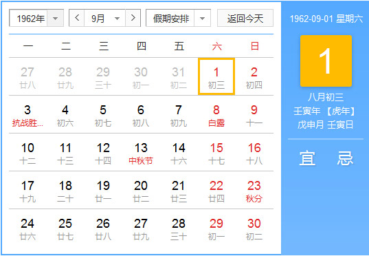1962年农历九月二十二干支五行