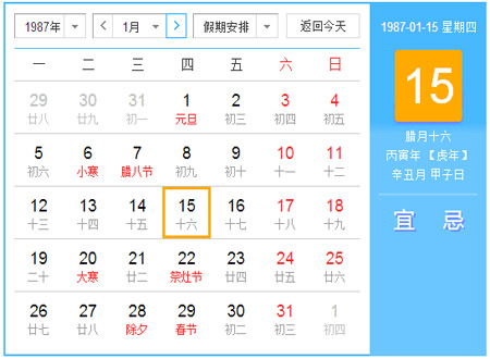 阳历是1987年3月6日